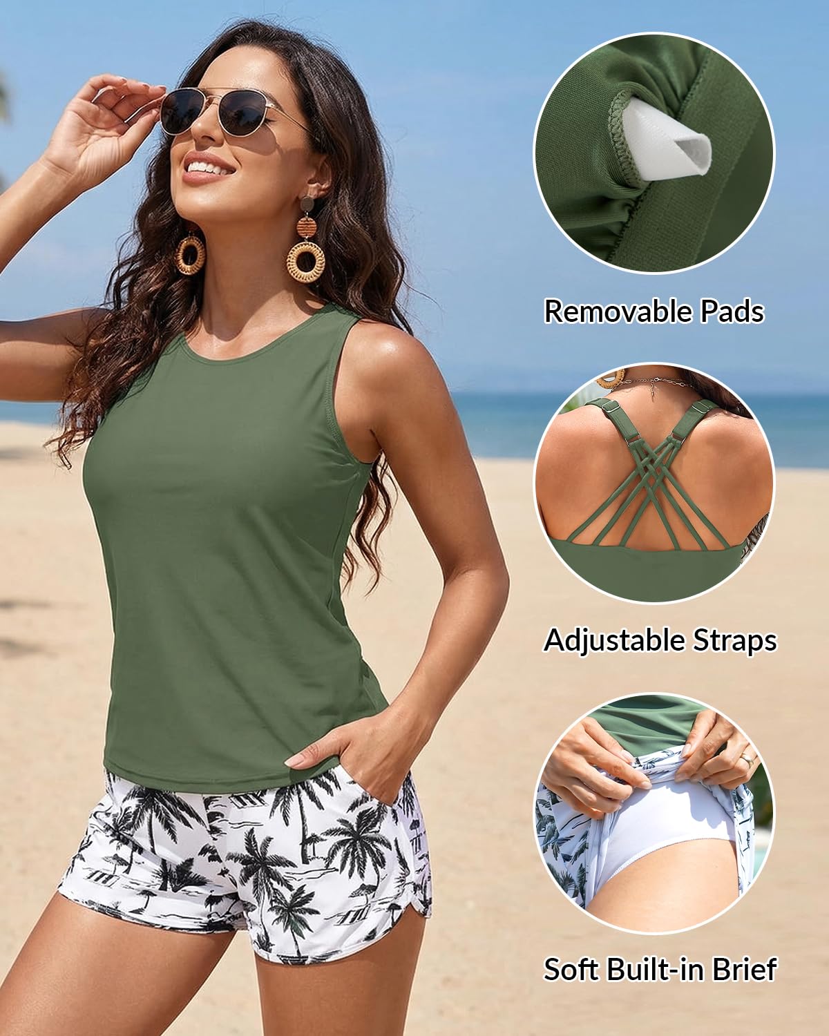 - Tankini with Shorts: Loose fit high waisted swim shorts with two side pockets hold essentials, while the tummy-control design flatters your figure. Built-in briefs ensure full coverage, no ride-up, and all-day comfort.