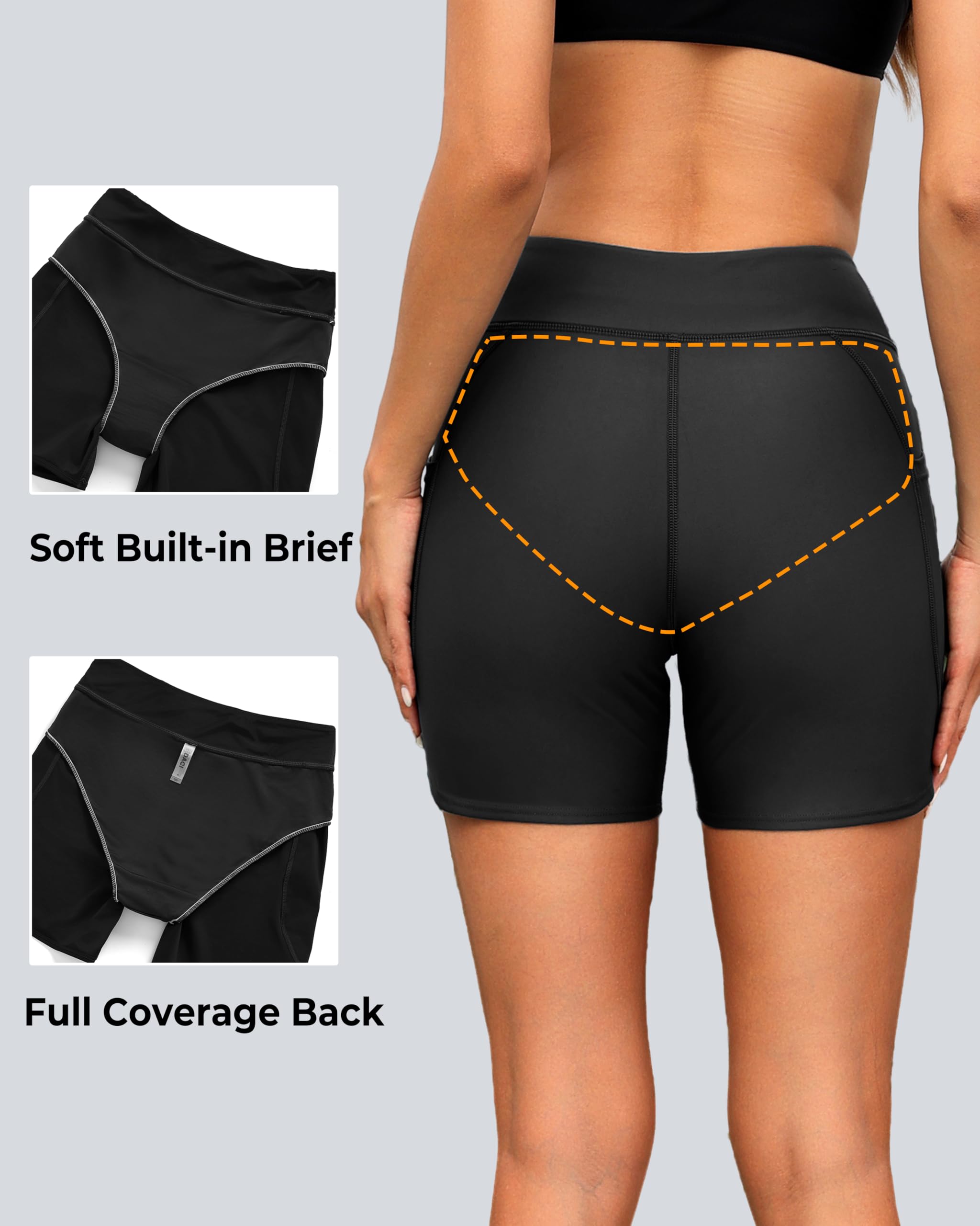 Daci Women High Waisted Swim Shorts - 3"/5"/7" Bathing Suit Short with Pockets Liner Tummy Control Swimsuit Bottom Boy Short—