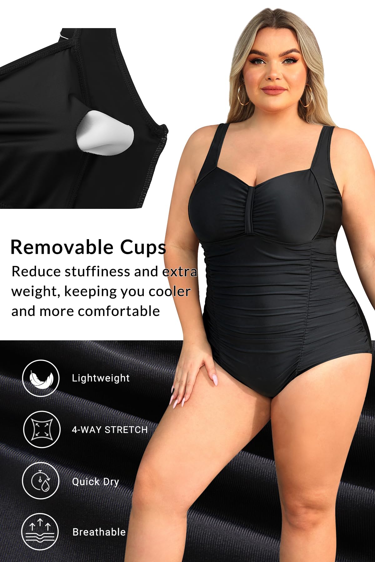 - Plus Size Bathing Suit: The plus-size black swimsuit comes in extended sizes to choose from: L (US 12W), XL (US 14W), XXL (US 16W), 18 Plus, 20 Plus, 22 Plus, , 24 Plus, 26 Plus, and 28 Plus. Please check the size chart in the product description before ordering.