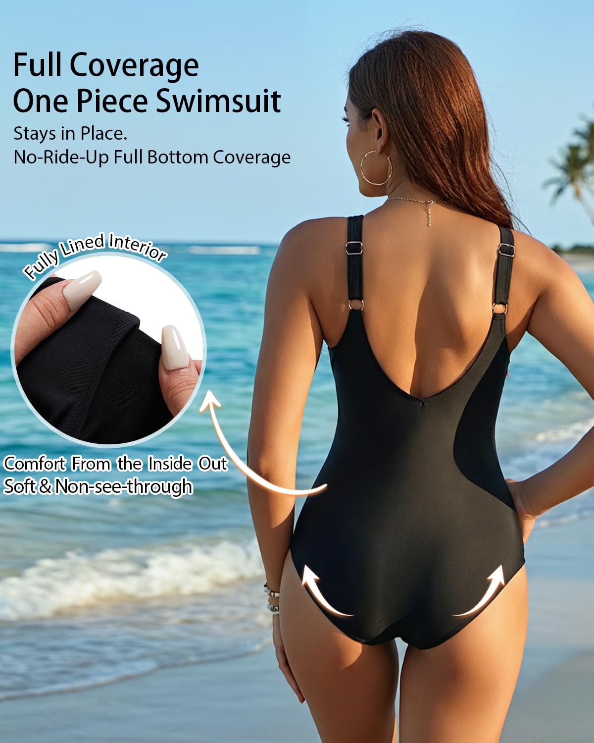 - Chic Metal Accents on the shoulder straps add a touch of modern luxury, elevating this swimsuit from a basic essential to a standout one-piece.