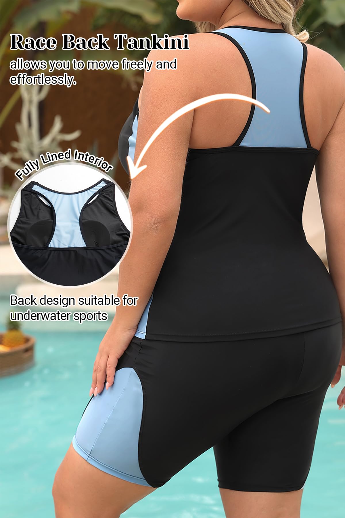 Daci Women's Plus Size Tankini Swimsuit - Two Piece Rash Guard with Capris Shorts and Athletic Racerback Bathing Suit—