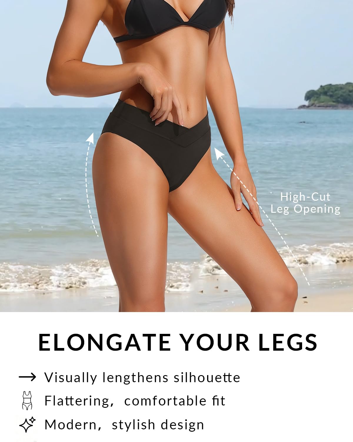 - V Cut Bikini Bottoms :The black bikini bottoms feature a flattering V-cut front that shapes the curves, making your waist look slimmer and more charming.