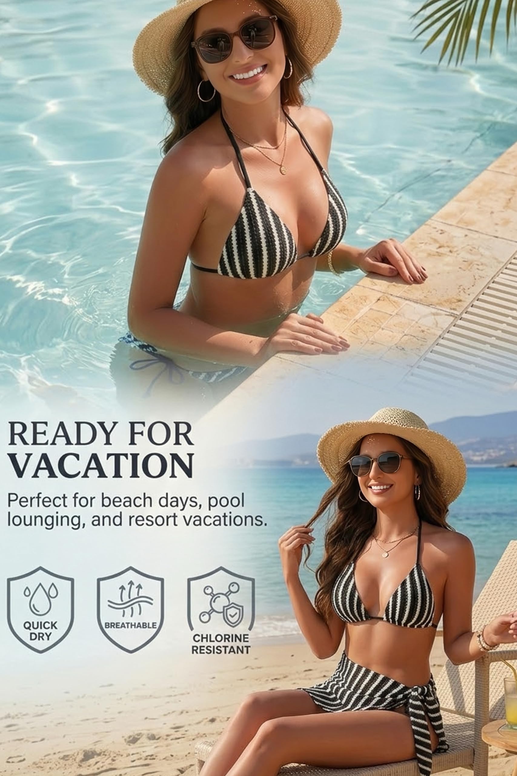 - 3 Piece Resort Wear: Includes a matching hollow-out sarong cover-up for a stylish layered look. Perfect for tropical vacations, summer cruises, beach days, and poolside lounging.